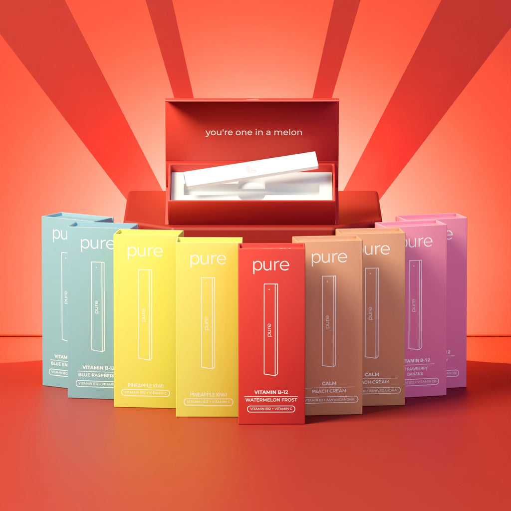 - Vitamin B-12 Diffuser (Watermelon Frost): Vitamin B12, Vitamin B6, Vitamin C, Watermelon Extracts, Jasmine Extracts, Rose Extracts, Vegetable Glycerin